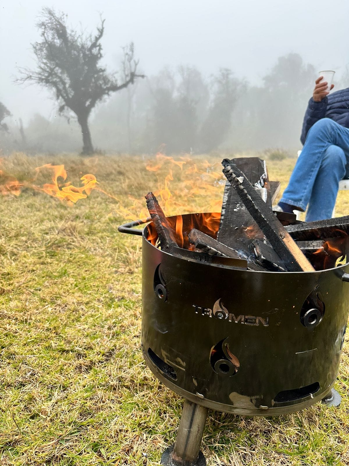 El Fogonero 410 está diseñado para hacer el fuego al aire libre y cuenta con una parrilla adaptable a dos alturas.