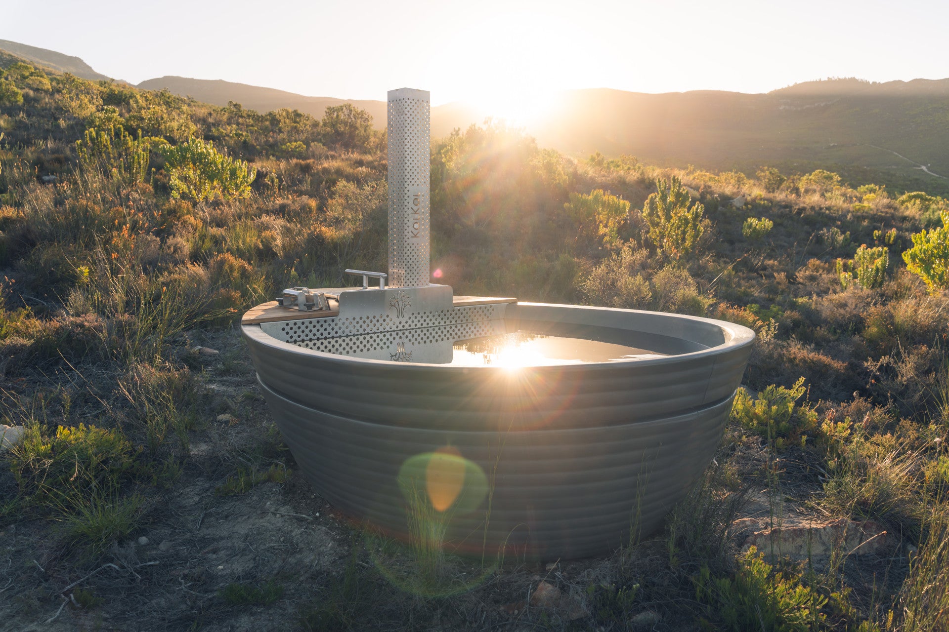 Su tina de polietileno de alta resistencia contiene 1.200 litros de agua, que se calientan fácilmente a leña, sin instalaciones ni sistemas complicados — solo con su calentador de acero inoxidable.